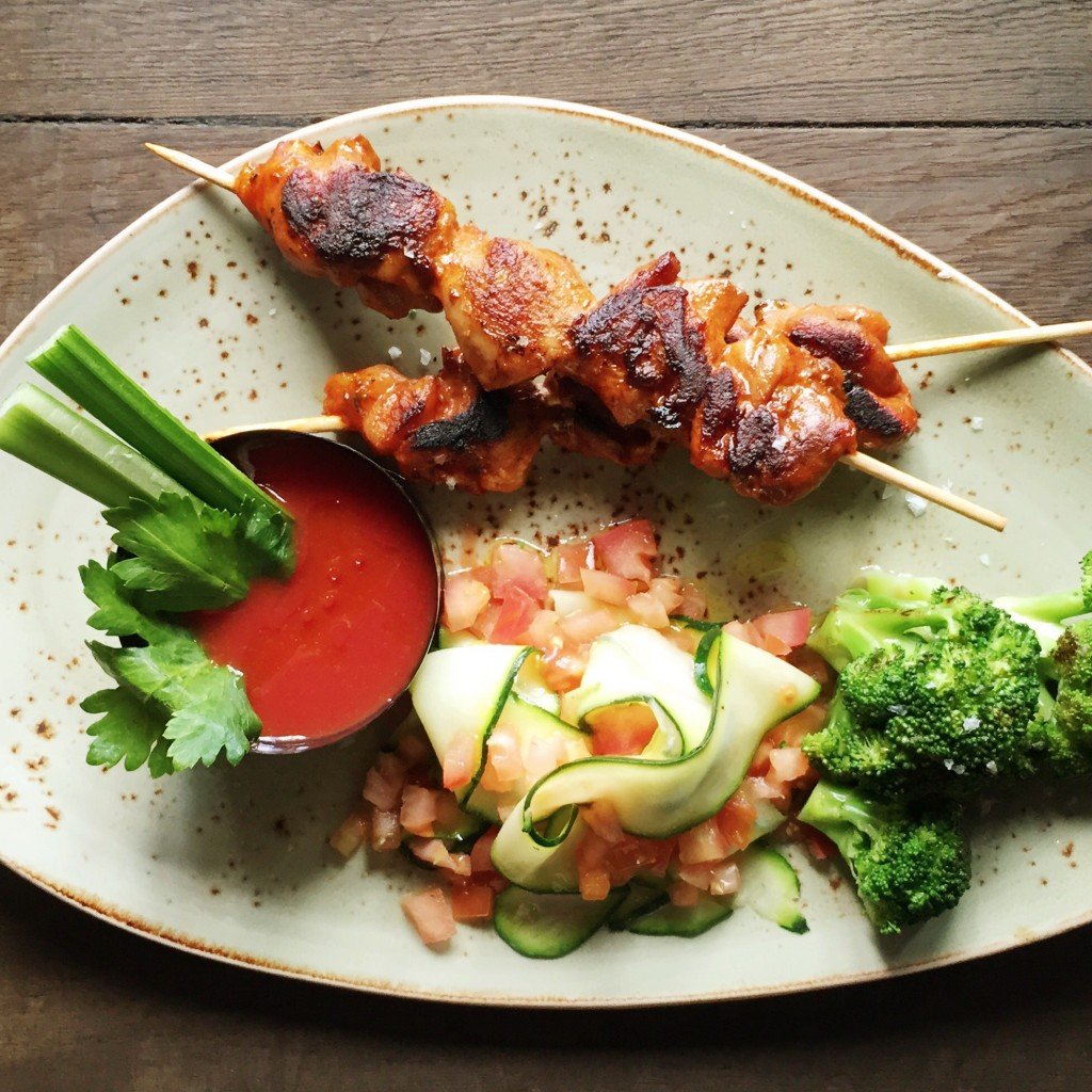 Brochetas de pollo campero marinadas con yogourt y cítricos